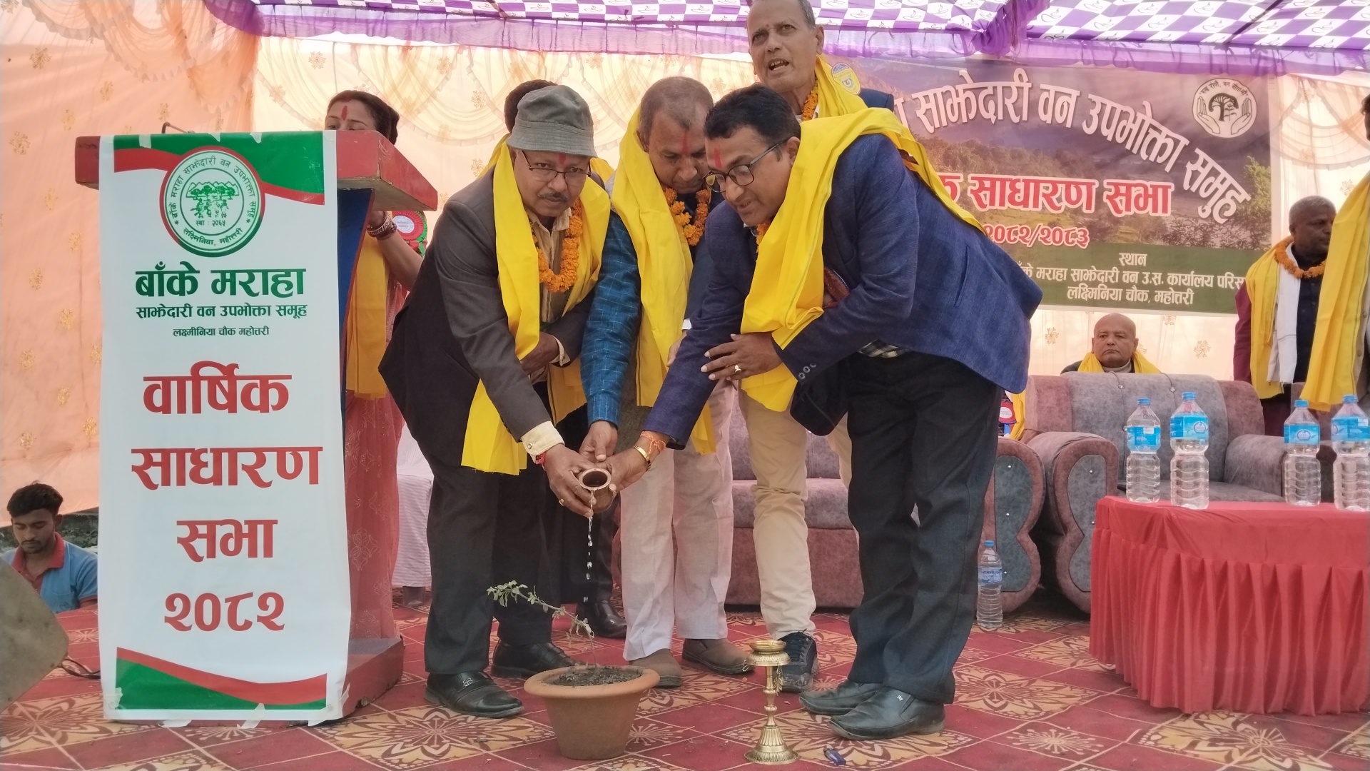 महोत्तरीको गौशाला नगरपालिका–११ अन्तर्गत लक्ष्मिनिया चोकस्थित बाँके सब–डिभिजन वन कार्यालयको प्रांगणमा सोमबार बाँके मराहा साझेदारी वन उपभोक्ता समूहको वार्षिक साधारणसभा सम्पन्न भएको छ ।